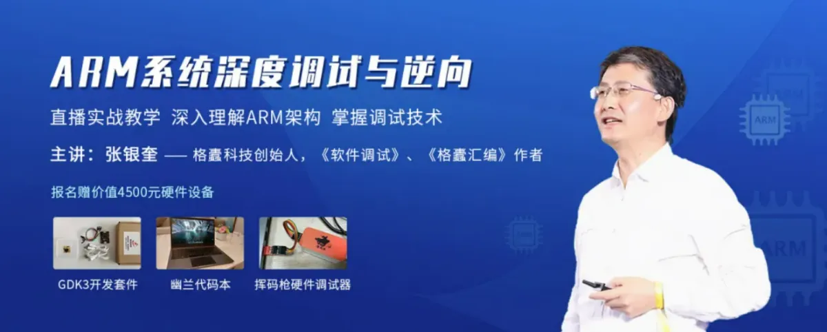 由《软件调试》作者张银奎主讲,深处着眼,浅出讲起,上调试器,看活代码,通过大量动手实验引领大家一起进入到ARM的世界中。